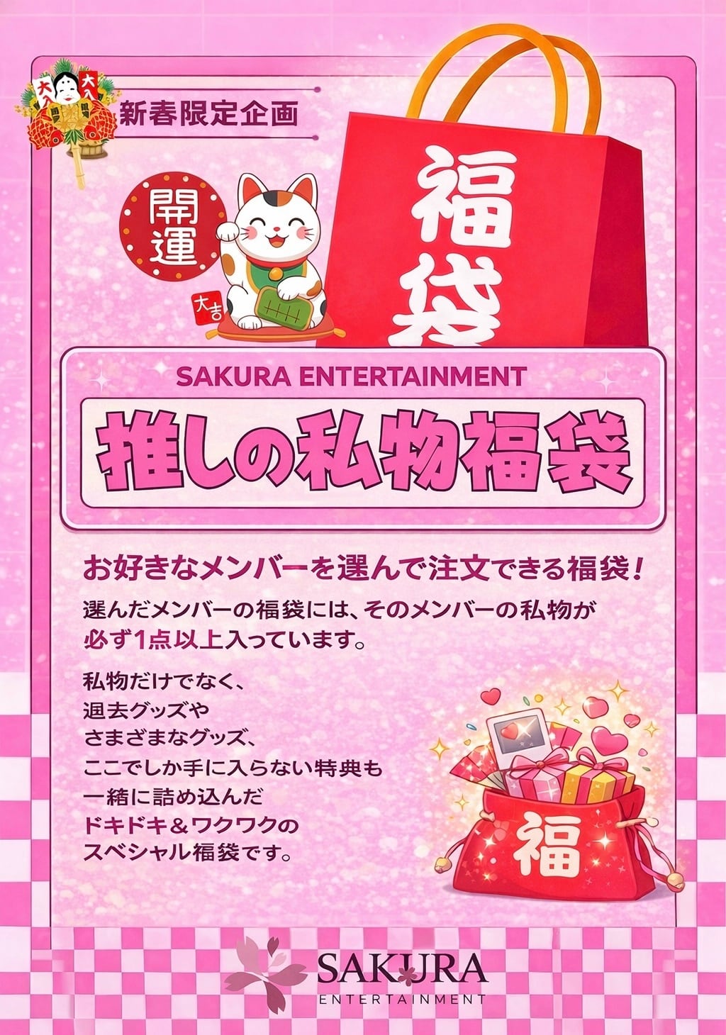 お好きなメンバーを選んで注文できる、推しの私物入り福袋を販売いたします。